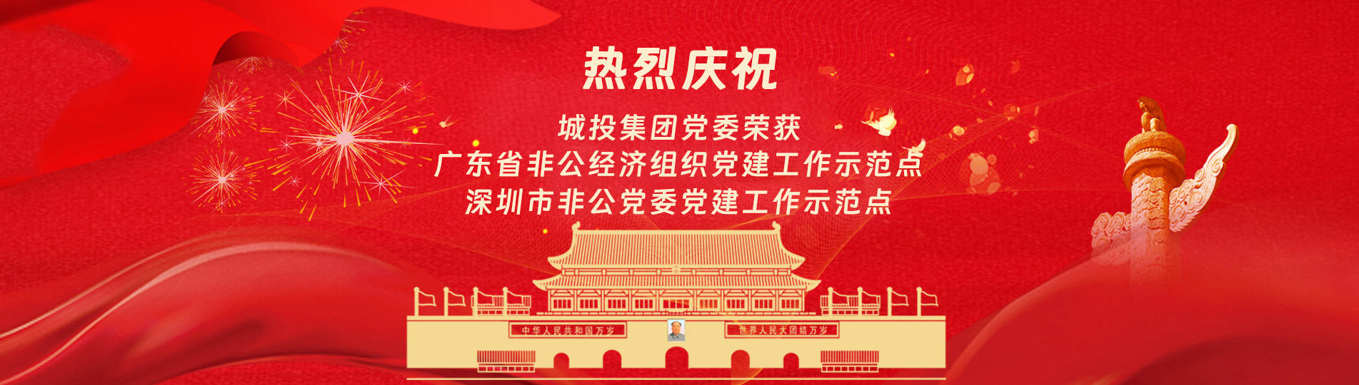 在上級黨委的正確領導下,在城投集團的大力支持下,集團黨委緊緊圍繞企業發展戰略,將黨建引領核心貫穿始終,以五心工程(即思政建設核心工程、經營發展中心工程、企業文化向心工程、黨建品牌匠心工程、服務基層愛心工程)為抓手,大膽探索,勇于突破和創新,不斷形成城投黨建特色,有效輸出城投實踐經驗,充分發揮紅色引擎作用,先后獲得深圳市非公黨委黨建工作示范點深圳市兩新組織黨建工作示范點深圳市文明單位深圳市先進基層黨組織、廣東省非公有制經濟領域黨建工作示范點等榮譽稱號。